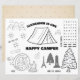 Personalisiertes One Happy Camper Coloring Tischset. Ideal als Ergänzung zu Ihrer Geburtstagsparty, um den Kindern viel behalten!
