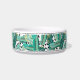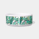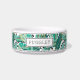 Die niedliche personalisierte Schüssel für Hunde und Katzen mit ihren stylishen Haustieren, die auf einem weißen Hintergrund mit abstrakten schwarzen Punkten ein Muster grüner Bananenfische aufweisen. Personalisieren Sie Ihre persönlichen Daten mit dem Namen Ihres Haustiers.