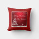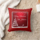 Ein hellrotes, fröhliches Weihnachtskissen personalisiert mit Ihrem Familiennamen (oder Namen). Es ist umkehrbar zu einem roten frohen Weihnachten. Erhältlich in verschiedenen Schriftart-, Material- und Kissengrößen.