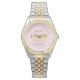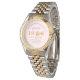 Celebrate a remarkable milestone with this exquisite Personalized 40th Birthday Watch for women. This elegant timepiece features a chic design in soft blush pink, perfectly accented with luxurious gold-look typography and a stylish two-tone silver and gold bracelet.