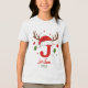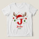 Create a one of a kind holiday keepsake with this festive personalized monogram. This design features the letter 'J' topped with a cute Santa hat and reindeer antlers, ready for your custom text. Click 'Personalize' to easily add a name and the year. Perfect for matching family shirts, custom stocking tags, or a special Christmas gift.