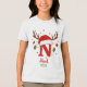 Create a one of a kind holiday keepsake with this festive personalized monogram. This design features the letter 'N' topped with a cute Santa hat and reindeer antlers, ready for your custom text. Click 'Personalize' to easily add a name and the year. Perfect for matching family shirts, custom stocking tags, or a special Christmas gift.