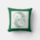 Elevate your home decor with this elegant and timeless personalized family name throw pillow. Featuring a chic green and white color palette, this design showcases a delicate botanical wreath surrounding your custom surname in a sophisticated serif font.