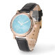 Make every second truly yours. This elegant watch combines a stunning blue dial with a luxurious rose gold frame and a sleek black leather strap—crafted to turn heads effortlessly.