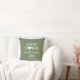 New home typography text housewarming gift for couples. Personalized with the couple's name, the address and the date they established their home. Trendy sage green throw pillow in a modern farmhouse style which emphasizes warmth and a cozy, inviting feel. The design features a white heart, a combination of simple fonts and elegant cursive script.