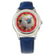Kinderuhr aus Edelstahl mit blauem Lederarmband