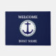 Dieses ist personifizieren Seeblau-Willkommens-Boots-Namen-Streifenfußmatte. Sie können Ihr LieblingsFoto addieren. Dieses ist perfekte Geschenkidee. Personifizieren Sie mit Ihrem Namen und anderem Text.