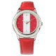 Kinderuhr aus Edelstahl mit rotem Lederarmband