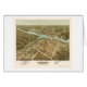 Von der größten und umfassendsten kartographischen Sammlung in der Welt, holt Zazzle Ihnen diese Gedenkkarte, die einen Panoramablick der Stadt von Peshtigo kennzeichnet, Wisconsin wurde produziert ursprünglich von T.M. Fowler im Jahre 1871. Die Karte wurde nur wenige Wochen vor dem großen Feuer gezeichnet, das Peshtigo am 8. Oktober 1871 versenkte. Der Verlust an Menschenleben war mehr als 800 - die größten Anzahl Personen, die überhaupt durch Feuer in den Annalen der US getötet wurden. Das verheerende Feuer wurde in großem Maße in den Nachrichten durch das Chicago-Feuer überschattet, das erstaunlich innerhalb der Stunden des Peshtigo Feuers auftrat.