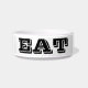 Eine Schüssel mit dem Wort "essen" in schwarzer Schrift