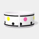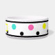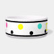 Polka Dots Personalisiert Pet Name Schalen. Farbenfrohe geometrische Polka-Punkte mit schwarzem Randstrich und rosa, gelb, türkis, schwarze Punkte vor weißem Hintergrund. Personalisieren Sie den Namen des Tieres in einem hellen, sonnigen, gelben Rechteck mit schwarzem Text. Helle, lustige, frische trendige, runde Formen. Klicken Sie, um die Farbe der Punkte zu personalisieren und anzupassen, wenn Sie möchten. Originelles Kunstwerk von TamiraZDesign. www.zazzle.com/tamirazdesigns
