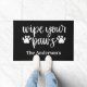 Personalisieren Sie diese Wischen Ihre Paws Schwarz-Weiß-Doormat. Erhältlich in zwei Größen. Ideal für die Familie oder Person mit Haustieren.