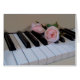 ein nahes Bild einer Klaviertastatur mit rosa Rosen.