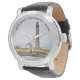 Uhr, Vintage Männeruhr mit schwarzem Lederarmband