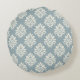 Pewter Blue und Alabaster Damask Round Throw Kissen