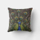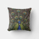 Großes Kissen entwarf mit einem Foto eines schönen Pfaus und seiner Federn.