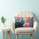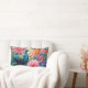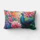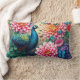 Das ist ein Kissen aus Lendenwirbel mit einem farbenfrohen Pfau mit Blume.