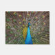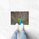 Originelles Kunstwerk eines Pfaues mit seinem Absturz. Die strahlenden Schwanz-Federn leuchten in den Schmucktönen Blau, aquamarin, Grün und lila und geben diesem stolzen Vogel den Anschein von Königtum. Die lebendigen Farben dieses majestätischen Erbsenhühners strahlen in dieser lebendigen Kunst, die den gesamten Designbereich ausfüllt.