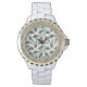 Weiße Damen Email Strassuhr