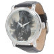 Uhr, Vintage Männeruhr mit schwarzem Lederarmband