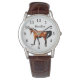 Pferd auf der männlichen klassischen braunen Leder Armbanduhr