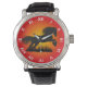 Uhr, Vintage Männeruhr mit schwarzem Lederarmband