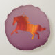 Rote Pferdekunst auf einem runden Kissen.