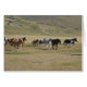 Ein Panoramabild einer Pferdeherde auf einer offenen Wiese. Perfektes Geschenk für jemanden, der Pferde Lieben.