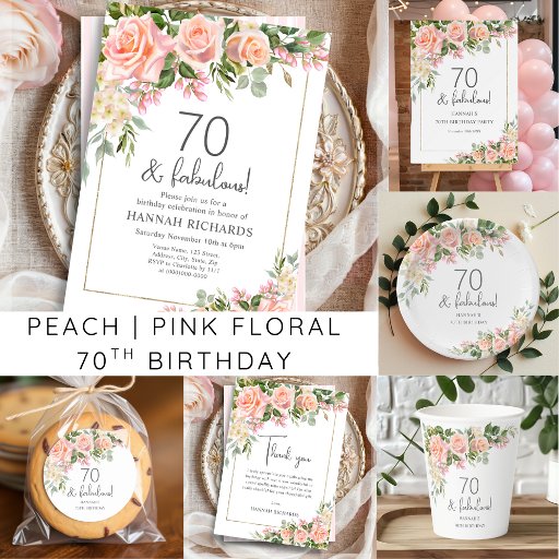 Peach | Pink Rose Floral 70th BirthdayDesignt von Natalie