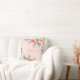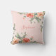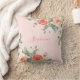 Dieses rosafarbene Kissen mit hübschen pfirsichfarbenen Rose, Blume und Blättern. Personalisieren Sie es mit einem Namen.