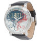 Uhr, Vintage Männeruhr mit schwarzem Lederarmband