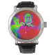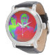Uhr, Vintage Männeruhr mit schwarzem Lederarmband