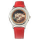 Kinderuhr aus Edelstahl mit rotem Lederarmband