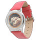 Uhr, Kinderuhr aus Edelstahl mit rosa Lederarmband
