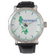 Philippinische Geschenkuhr. Stilisierte Karte der Philippinen auf einer Armbanduhr. In grün und blau auf weiß gedruckt. Geschenk für ein philippinisches oder jemand, der mit den philippinischen Inseln verbunden ist.