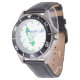 Stilisierte Karte der Philippinen auf einer Armbanduhr. In grün und blau auf weiß gedruckt.
