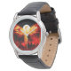 Eine Uhr mit einem Gesicht mit einem Phönix-Aufstieg aus der Asche.