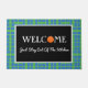 Blaue und grüne Pickleball-Plätze in einem super lustigen Muster mit weißen gepunkteten Linien, die Netze darstellen, sind der Hintergrund für diese pickleball-thematische Begrüßungsmatte. Ein orangefarbenes Pickleball ersetzt das O in Welcome. Genauso wie auf dem Pickleball Court sind Sie bei uns willkommen - spielen Sie einfach nicht in der Küche.