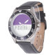 Uhr, Kinderuhr aus Edelstahluhr mit lila Lederarmband