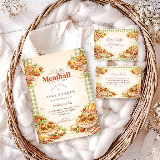 A charming and playful baby shower design inspired by the beloved “little meatball” theme. Soft illustrations and warm, cozy details create a sweet Italian-inspired vibe that feels joyful, welcoming, and full of personality. Perfect for parents-to-be who love whimsical themes with a touch of comfort and humor. Text is fully customizable to match your celebration.
