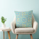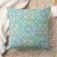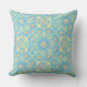 Dieses Kissen in hellgelb auf helltürkisblau ist für die Bohemischen in Ihnen! Legen Sie es auf Ihre Couch, Ihr Bett oder in Ihr Sonnenzimmer. Wo immer du es hingetan hast, wird es das Zimmer aufhellen und dich zum Lächeln bringen. Hellgelbe Medaille/Mandala auf hübsch türkisfarbenem Hintergrund. Design von Oregon Tile Maker Fay Jones Day.