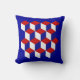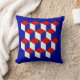 Drei dimensionale Blöcke in Rot, Weiß und Blau werden zusammengestapelt, was eine optische Illusion einer sich verändernden Orientierung zeigt. Mehrere Blöcke wickeln sich von vorne nach hinten um den Rücken.