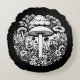 Pilze und Blume in Schwarz und Weiß Rundes Kissen