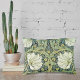 Ein Akzent Kissen mit dem Muster des britischen Künstlers William Morris (1834-1896), Pimpernel (1876). Ein Kunstgewerbe mit zarten, weißen Mohnchen, gelben Blume und üppig grünen Blätter.