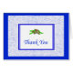 Blank Dankeschön Karte mit goldenen Kiefernfüßen und blauen Rahmen.