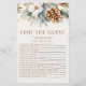 Dies ist ein Winter Pine Tree Floral Finden Sie das Guest Baby Duwer Game. *Finde The Guest - Dies ist ein Eisbrecher-Spiel. Das Spiel enthält 15 Fragen. Jeder Gast trifft sich in der Dusche, findet Leute, die zu jeder Frage passen, und gibt dann seinen Namen ein. Wer die meisten Namen ausgefüllt hat, gewinnt!