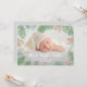 Elegant süße Geburtshinweise zeigen Ihr Lieblingsbaby-Foto mit einem Rand von Kiefern und Beeren, dem Namen Ihres Babys, der Geburtsstatistik und den Namen der Eltern in jeder Schriftart- und Schriftart-Farbe. Ändern Sie die Farbe auf der Rückseite und fügen Sie mehr Fotos auf der Rückseite auch!