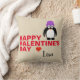 Dieses Whimsical Design zeigt meinen breiten, mit Augen Pinguin mit dem lila Hut. Der hellrote Text lautet "HAPPY VALENTINE'S DAY". Dieses Kissen kann durch einen Namen personalisiert werden. Sie können dieses Kissen durch eine Änderung der Hintergrundfarbe weiter anpassen.