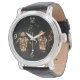 Uhr, Vintage Männeruhr mit schwarzem Lederarmband