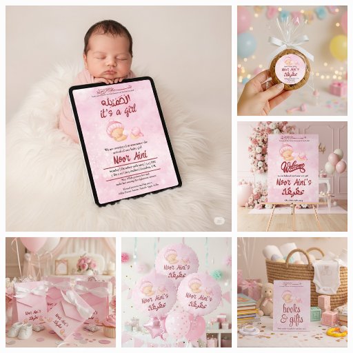 This "Pink Aqiqah Baby Girl Welcome Sign" is a beautiful and heartfelt way to celebrate the arrival and Aqiqah ceremony of a baby girl. Featuring a sweet pink color palette, elegant typography, this welcome sign makes a wonderful centerpiece for your celebration, warmly greeting guests and honoring this significant milestone in a Muslim family.
